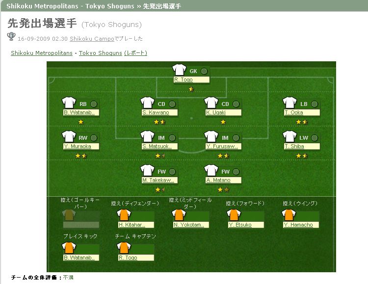 1回戦相手は格下ということもあり、5-4-1でちょっと育成も考えながら,さらにPICで戦いました。