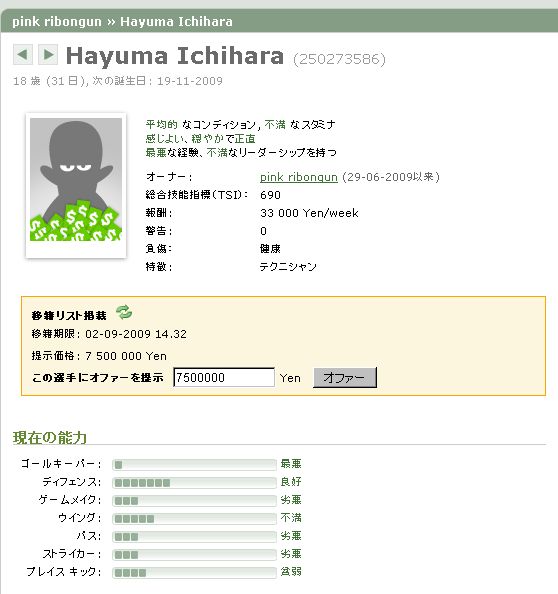 あと18歳で良好のディフェンスがあるユースあがりを移籍リストに載せているんで興味があったらポチってやって下さい。