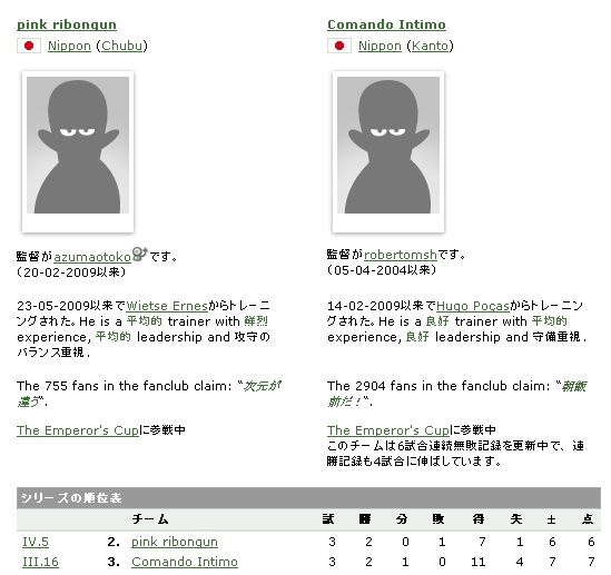 もうひとつ不戦敗していたチームは復帰しました。(このチームはライバルになるでしょう)